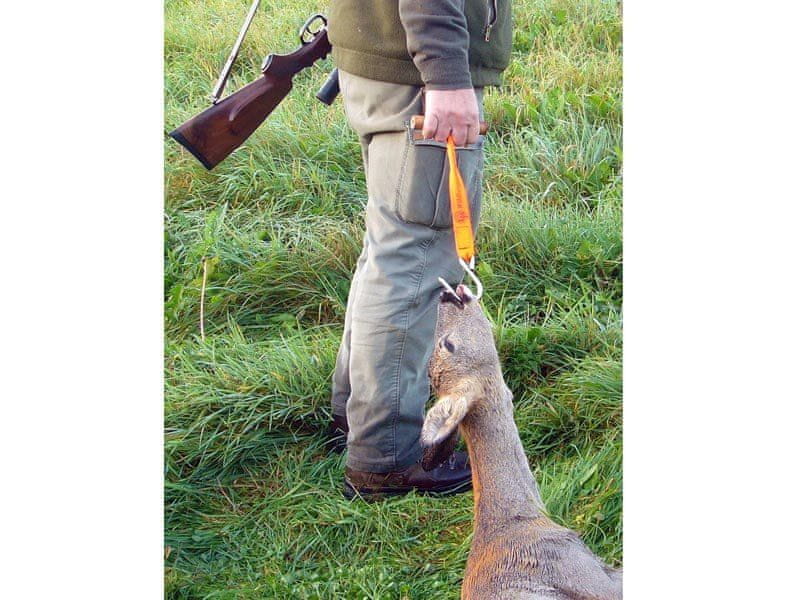 Prevleka trupov se uporablja za prevoz in obešanje jelenov, odstavljencev in telet. Preprosto primite kavelj v obliki črke T in ga pritrdite pod čeljust živali. Nosilec je udoben, praktičen in enostaven za uporabo. Trak je odporen na trganje do 220 kg.