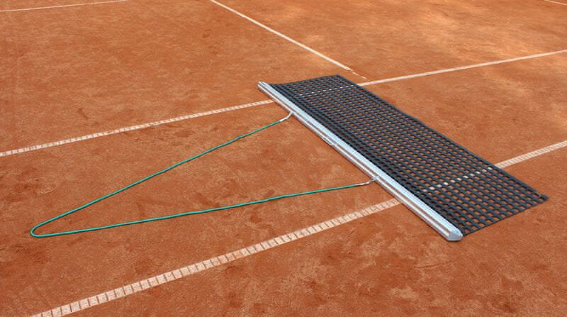 Podloga za vlečenje z vlečno vrvico za vzdrževanje glinene površine in enakomerno razporeditev gline po celotni površini igrišča. Celoten opis