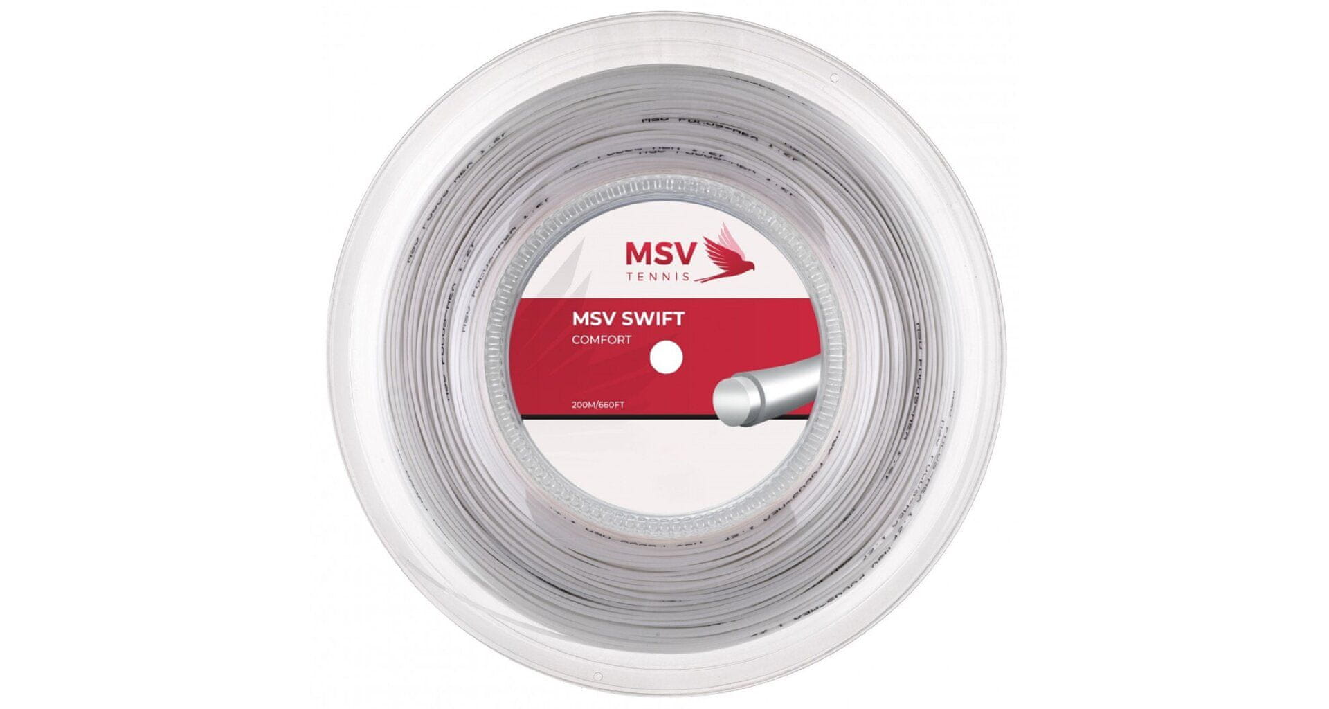 Teniška struna MSV Swift je popolna novost te blagovne znamke. Idealna je za igralce, ki iščejo uravnoteženo struno, ki je nežna za roko. Kompleksna mešanica šestih različnih materialov je obdelana v treh korakih, da nastane zelo mehka monofilamentna vrvica z visoko stopnjo udobja. V primerjavi z drugimi kopoliesterskimi strunami s podobnim profilom lastnosti (npr. Luxilon Alu Power) ponuja MSV SWIFT nadpovprečno udobje (+10 % točk), stabilnost napetosti (+8 % točk), moč (5 % točk) in kontrolo (3 % točk, vse vrednosti so povzete po racketpedia.com). Absolutna vrednost nadzora je 95 %. Zaradi okrogle oblike je MSV Swift dobra izbira za hibridne strune. Prednosti: MSV Swift ponuja primerljivo prožnost kot MSV +38, vendar primerljiv nadzor pod obremenitvijo kot MSV Ultra hex. Ta spajanje združuje prednosti prilagodljivejšega MSV +38 in odličen nadzor MSV Ultra hex.