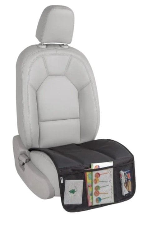 Zaščita za sedež je primerna za za naslonski in sedalni del sedeža ali ločeno kot zaščita za sedalni del sedeža ter hrbtno stran sprednjega sedeža. Opremljena je z žepom za iPad na zgornjem delu in mrežastim žepom za igrače ali druge potrebščine na spodnjem delu.