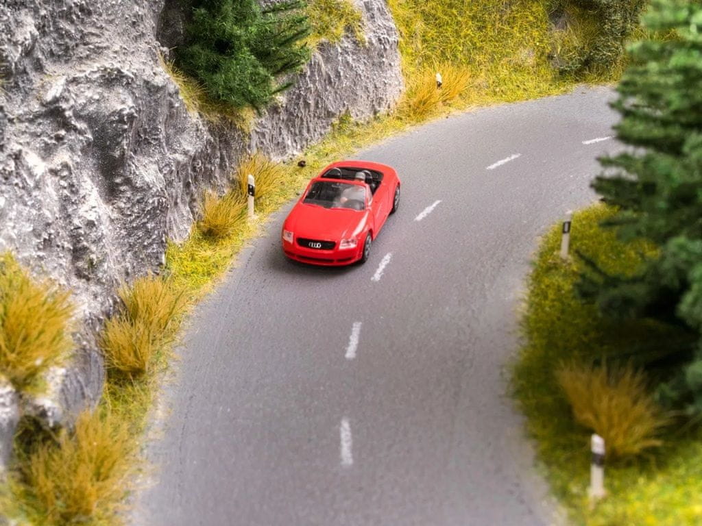 Kompletna rešitev za ustvarjanje prometnih znakov na modelih cest. Začetni komplet vsebuje vse, kar potrebujete za enostavno in natančno ustvarjanje sredinskih pasov in robnih črt cest. Zahvaljujoč priloženemu prilagodljivemu označevalniku krivulj lahko brez težav označite tudi krivulje. Posebna cestna oznaka je idealna za uporabo tako s predlogo kot s prilagodljivim označevalcem krivulj. V kompletu je vključena tudi vzorčna predloga za gabarite H0, TT in N. Širši nabor predlog z različnimi prometnimi simboli, kot so smerne puščice, prehodi za pešce, parkirišča in številne druge oznake, je na voljo ločeno za vsako serijo gabaritov. Posebne oznake lahko kupite kot dodatno opremo v priročnem paketu treh kos. Vsebina paketa: 1× prilagodljiva oznaka krivulje1× cestna oznaka 1× šablona za merila H0, TT in N Glavne značilnosti: to je model, ne igračaprimerno za starost 14 let in večMerilo H0, TT, N
