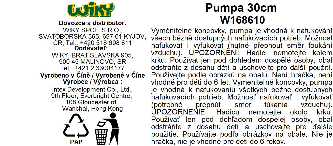 Robustna zračna črpalka INTEX z velikostjo 32 cm je primerna za napihovanje in praznjenje napihljivih izdelkov. Paket vključuje prilagodljivo cev s 3 različnimi nastavki za šobe.