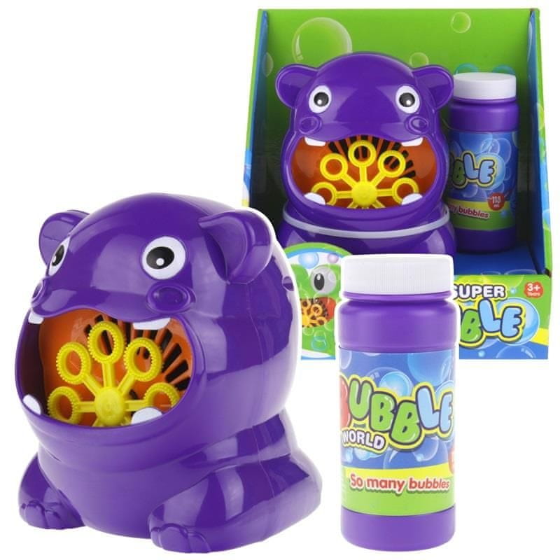 Čudovit stroj v obliki povodnega konja vam bo omogočil uživanje v pogledu na bleščeče se mehurčke. Samo nalijte vanj priloženo tekočino in pritisnite gumb na zadnji strani igrače.