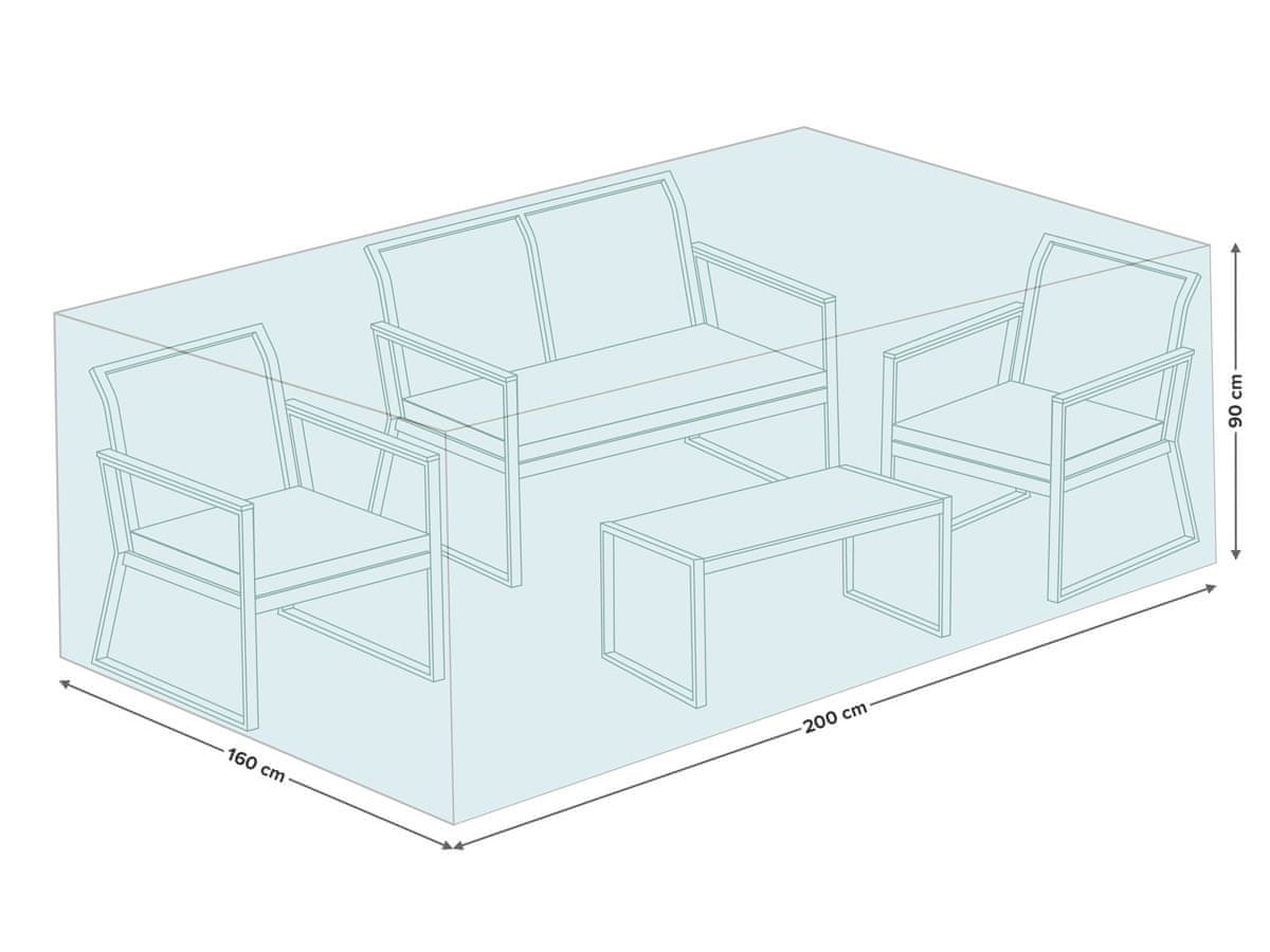 Prevleka meri 90 cm v višino, 200 cm v širino in 160 cm v globino, zaradi česar je dovolj velika, da pokrije večino vrst vrtnega pohištva. Njegova nepravilna oblika omogoča enostavno montažo in demontažo, kar olajša shranjevanje in transport. Izdelek je dostavljen že sestavljen, zato ga lahko uporabite takoj.