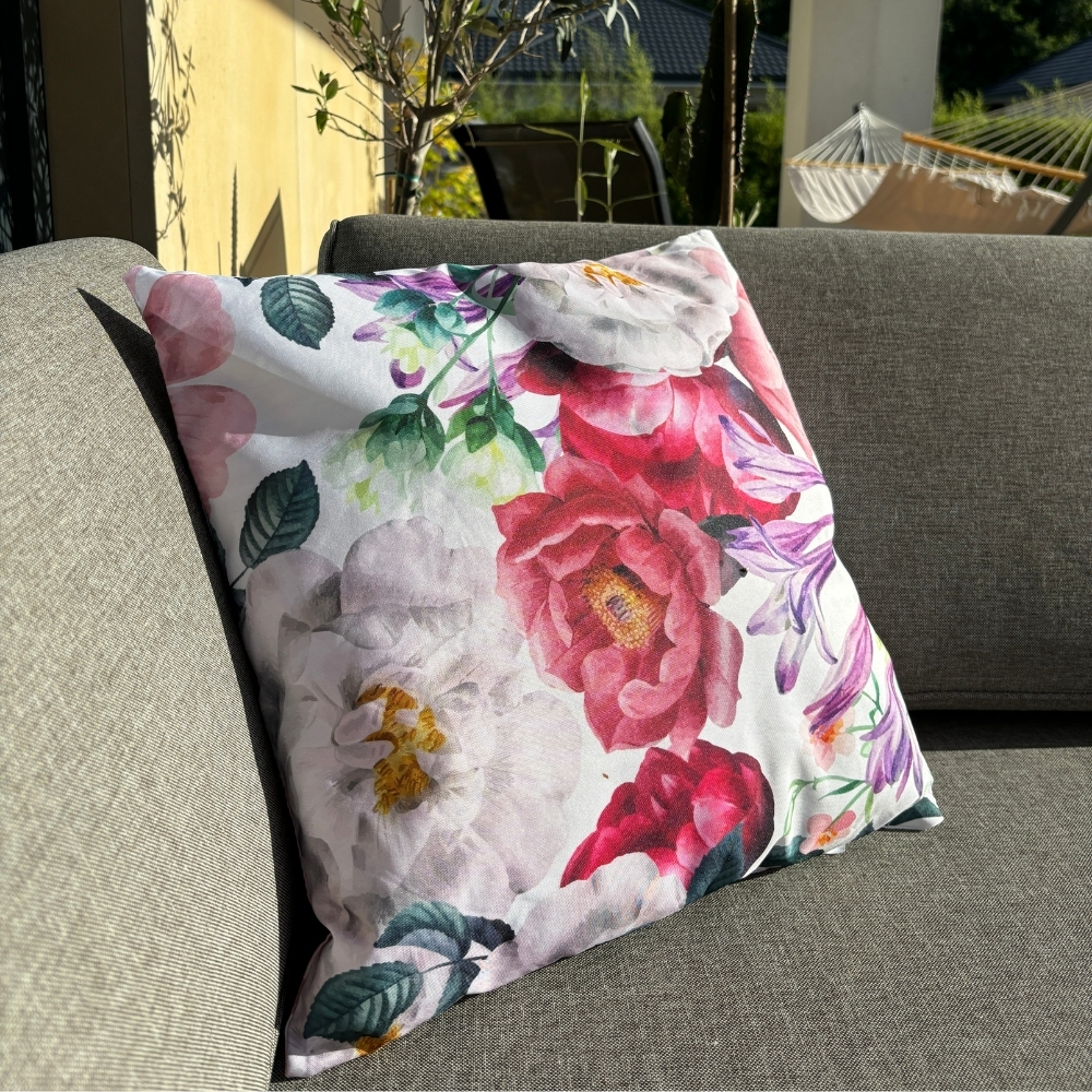 ☀️VRTNA BLAZINA S POLNILOM, DEKORATIVNA, VODOODPORNA, Z UV FILTROM, TKANINA OXFORD S CVETNIM MOTIVOM, 45X45☀️