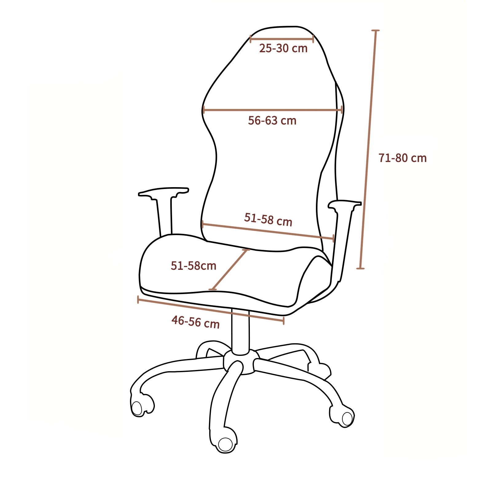 Naše prevleke ustrezajo številnim foteljem, tudi tistim, ki odstopajo od navedenega razpona velikosti. Vendar pa je to, ali bo ustrezala vašemu določenemu kosu pohištva, odvisno od njegove celotne oblike.