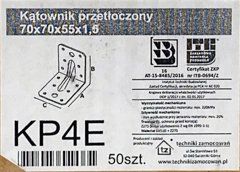 Kotniki so izdelani iz vroče pocinkane pločevine, ki jo odlikuje visoka protikorozijska zaščita, odpornost na deformacije in mehanske poškodbe.