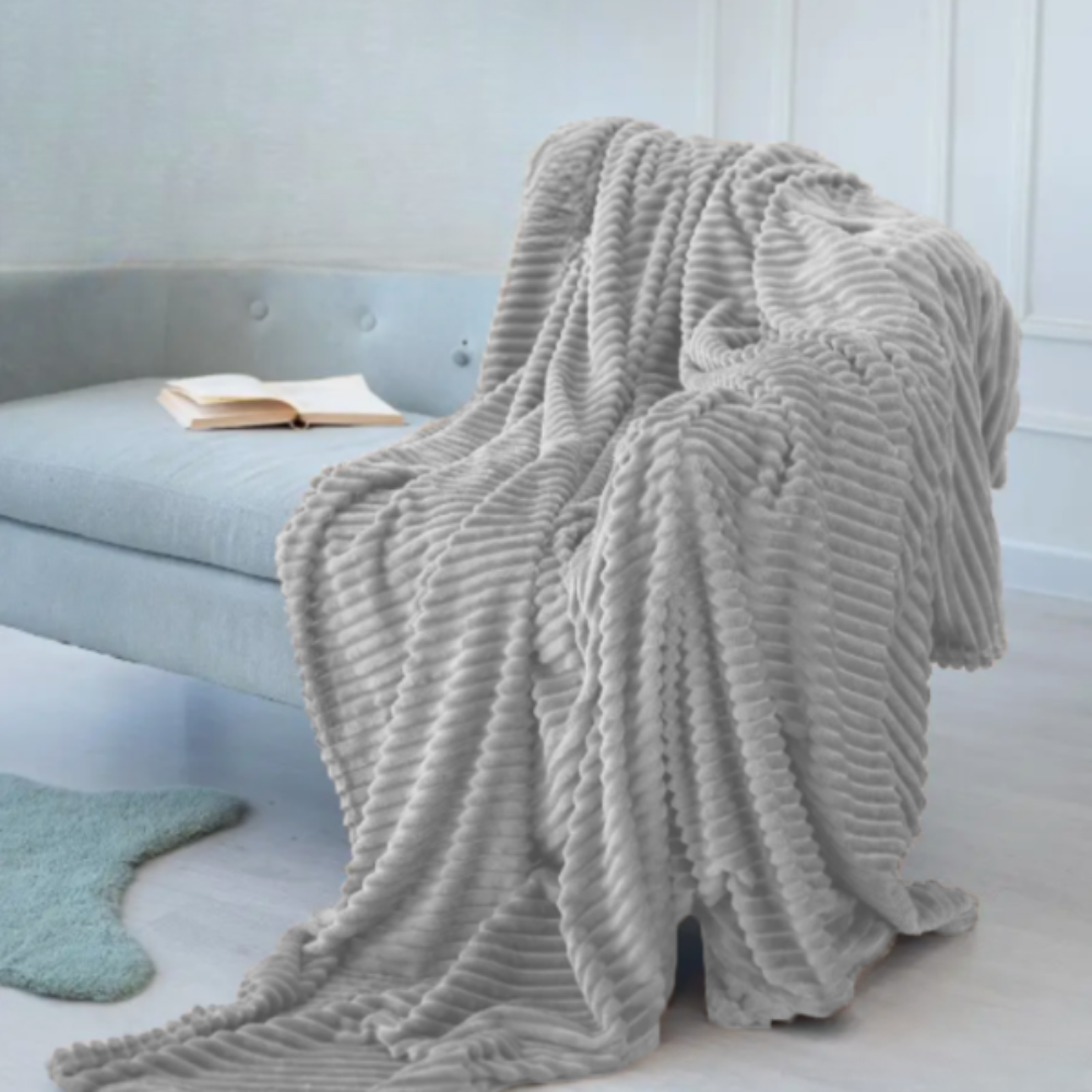 shumee Odeja pregrinjalo za posteljo črtasto posteljo fotelj velika siva 160x200cm plišasta odeja