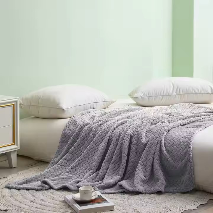 ⭐️ODEJA ZA POSTELJO Z VZORCEM RIBJE KOSTI TOPLA ODEJA Z RELIEFNIM KAROIRJEM 160X200 CM SVETLO SIVA⭐️