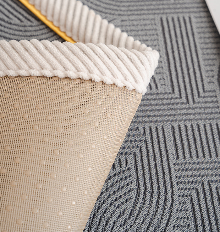 Podloga je izdelana iz trpežnega poliestra, ki seoprime kavča,in se zaradi protizdrsnega premaza na spodnji strani ne premika. Ta material ni le zelo trpežen, ampak je tudi okrašen z zlatim robom, kar mu doda čar.
