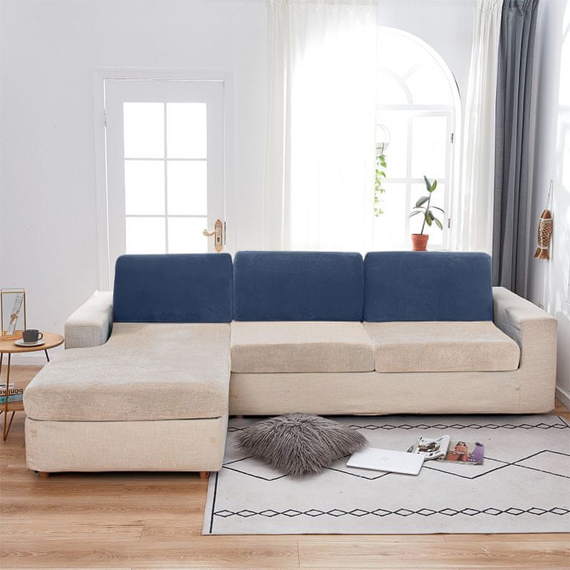 shumee Prevleka za BLAZINO ZA NASLONJALO kavča, KOTNI KAVČ, žamet, temno modra