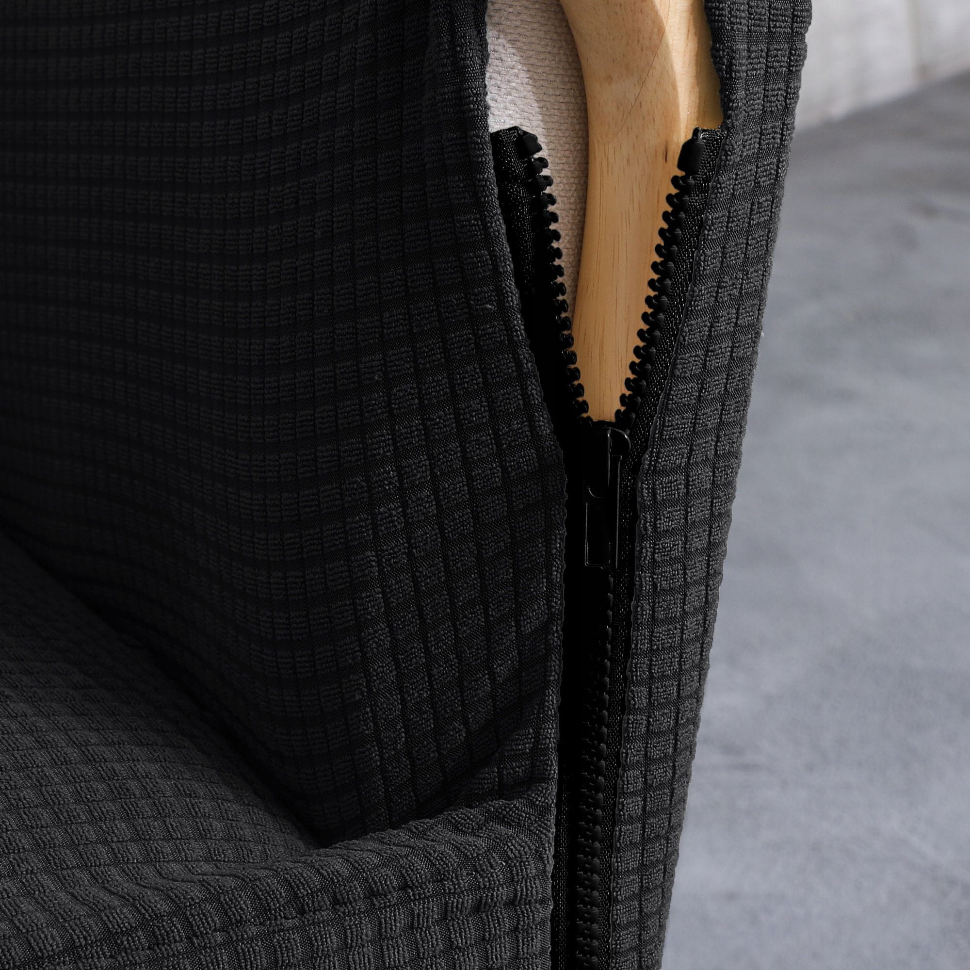 Zahvaljujoč zadrgi se prevleka popolnoma prilega naslanjaču.