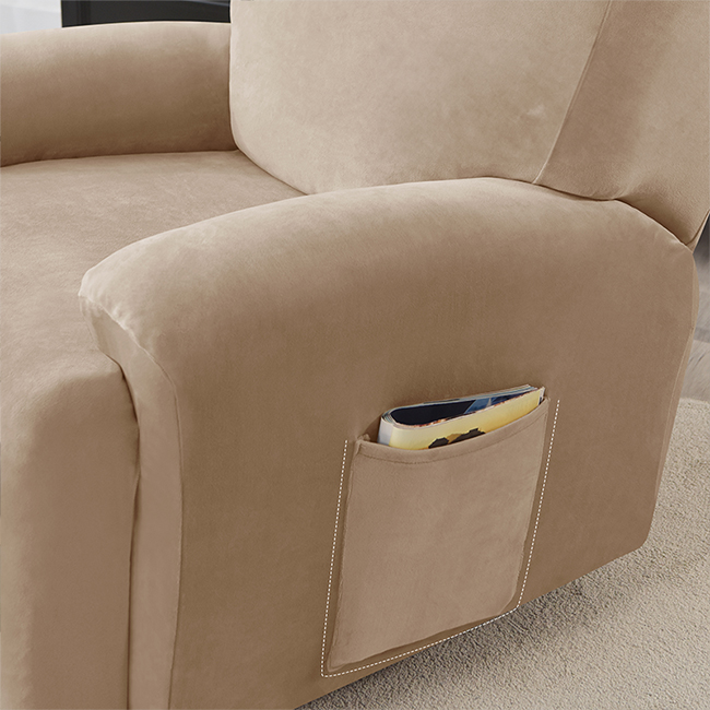 Prevleka za fotelj, 4-delna, ŽAMETNI plišasti BEŽ, KAPUČINO