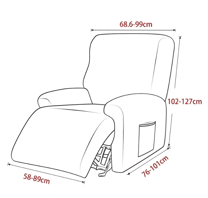 Prevleke bodo najbolje delovale na naslanjačih z dimenzijami, kot je prikazano na priloženi grafiki