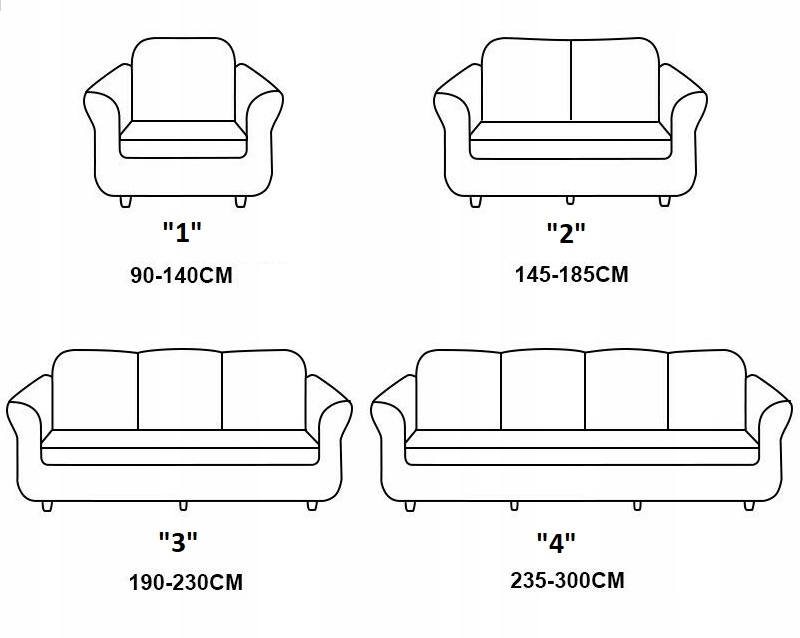V naši ponudbi boste našlištiri velikosti prevlek, ki ustrezajo 90 % velikosti kavčev. Vsaka velikost je na voljo v kar sedmih barvah, tako da bo vsakdo našel različico zase.