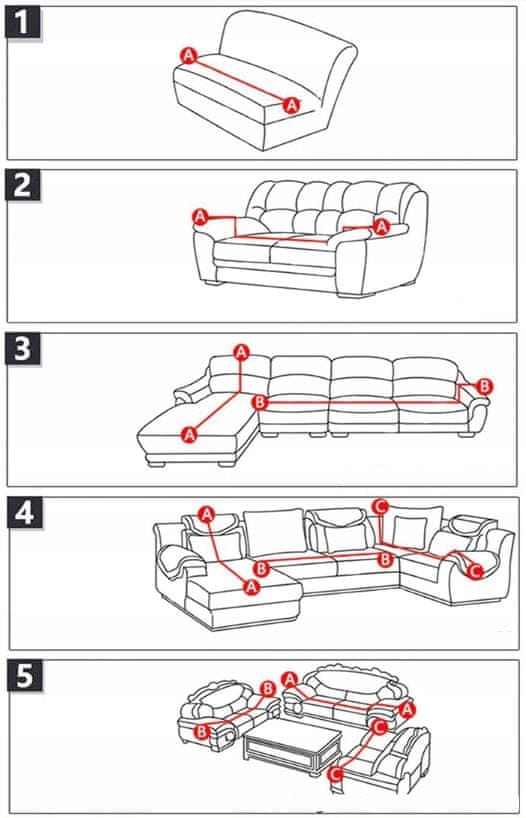 Če je AA=190–230 cm, izberite prevleko za kavč. 3-sedežni