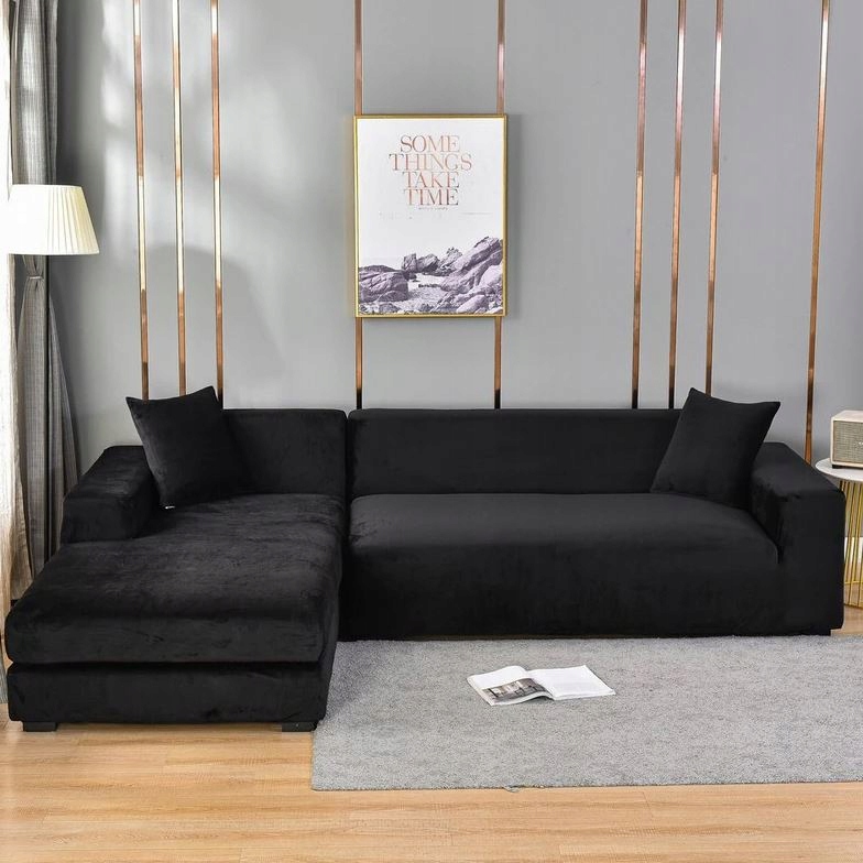 shumee PREVLEKA za kotni kavč s 4 sedeži, ČRNI žamet