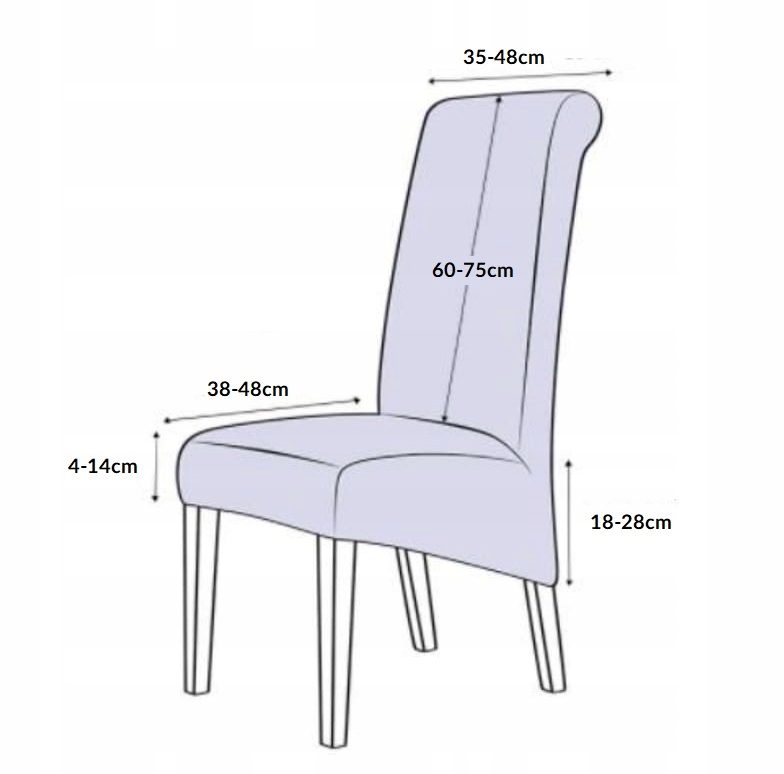 Naše prevleke ustrezajo številnim stolom, tudi tistim, ki odstopajo od navedenega velikostnega razpona. Ali bo ustrezala vašemu stolu, je odvisno od celotne oblike stola.
