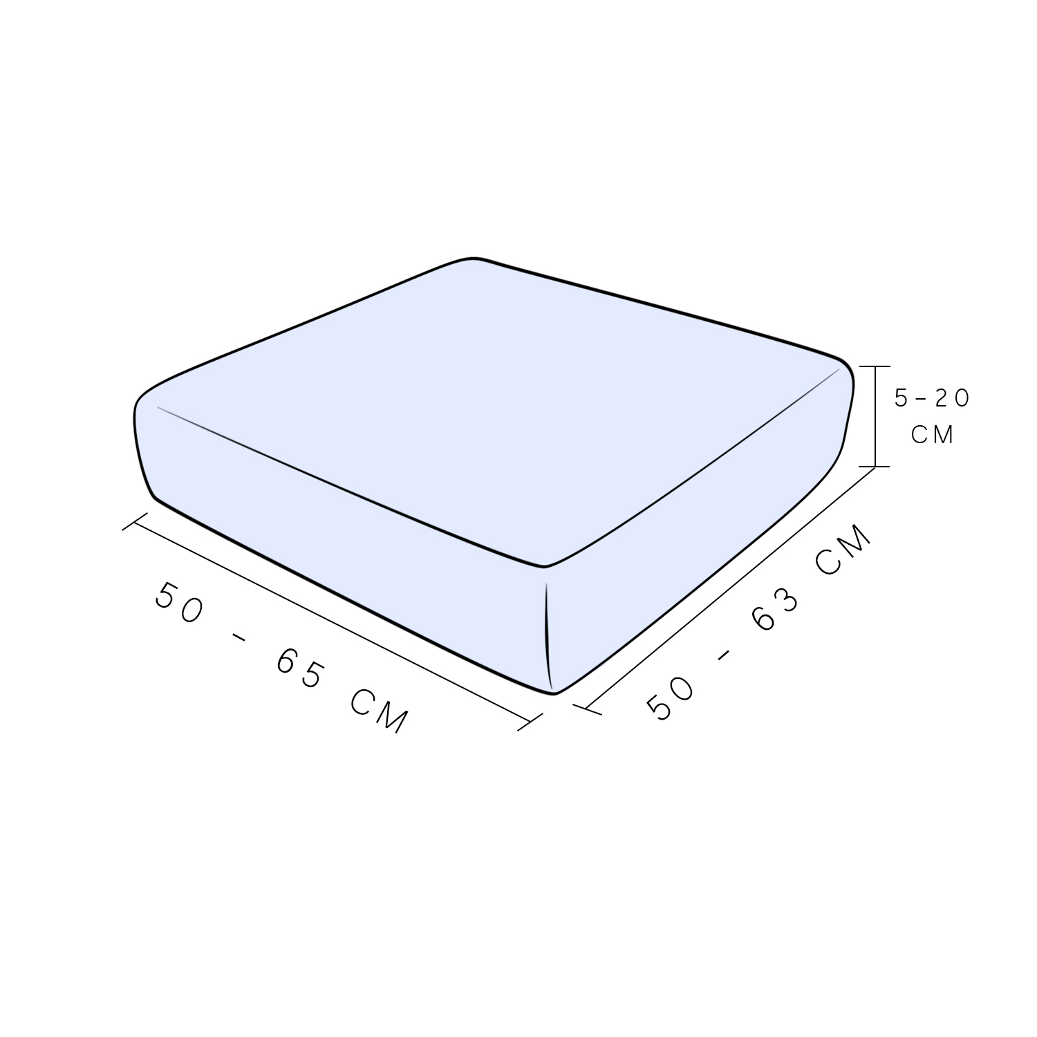 Prevleke za blazine in sedeže se bodo popolnoma prilegale blazinam z dimenzijami, podobnimi tistim, prikazanim na grafiki.