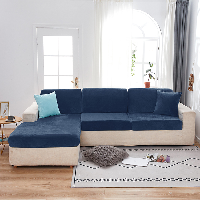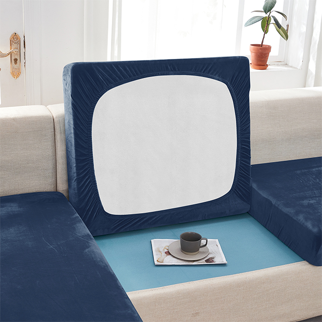 shumee Prevleka za sedež kavča, ŽAMET, TEMNO MODRA 150–190 cm