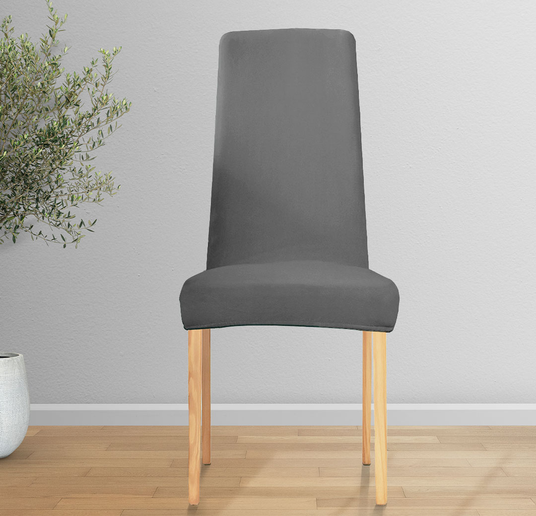 PREVLEKA za stol z ozkim naslonjalom, DEBEL VELUR, TEMNO SIVA