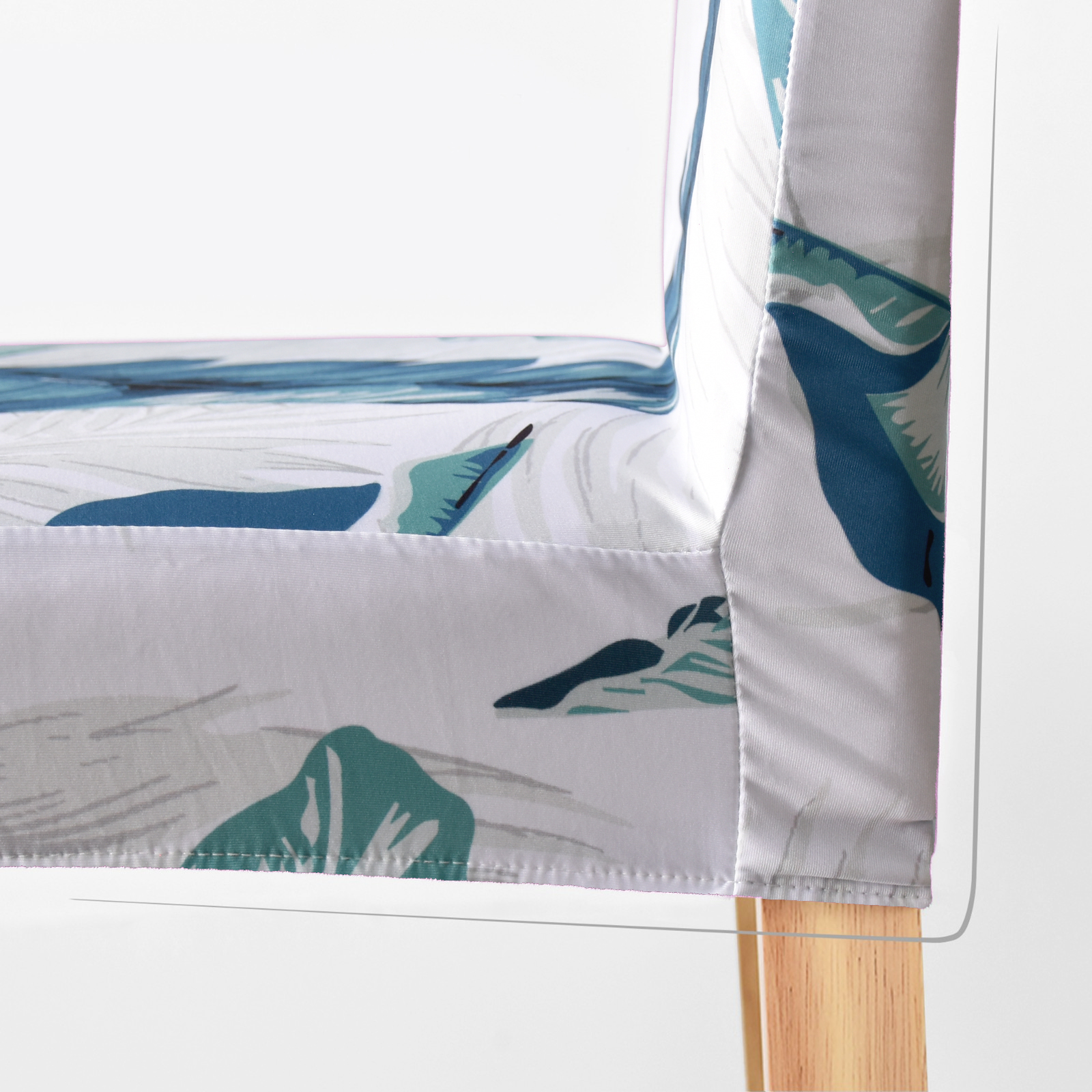 (Dražba je za svetlo prevleko za stol z vzorcem modrih in zelenih listov na svetlem ozadju.)