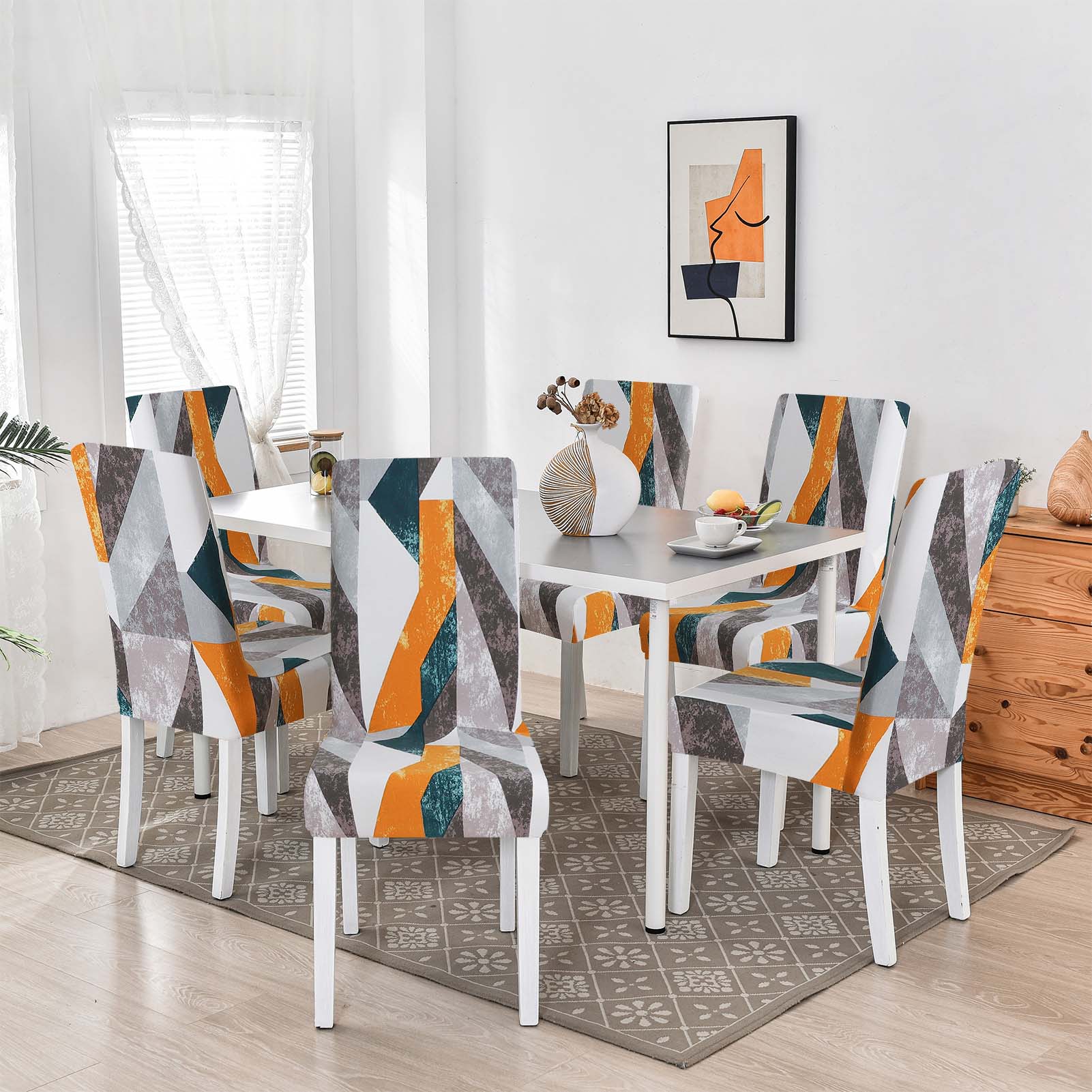(Dražba je za prevleko za stol z geometrijskimi vzorci v naslednjih barvah: siva, zelena in oranžna)