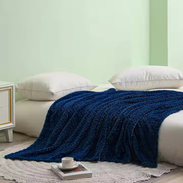 ⭐️ODEJA ZA POSTELJO TEMNO MODRA RELIEFNA PLEŠENICA 200X220 CM BOŽIČNO DARILO⭐️