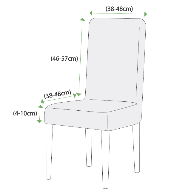 Naše prevleke ustrezajo številnim stolom, tudi tistim, ki odstopajo od navedenega velikostnega razpona. Ali bo ustrezala vašemu stolu, je odvisno od celotne oblike stola.