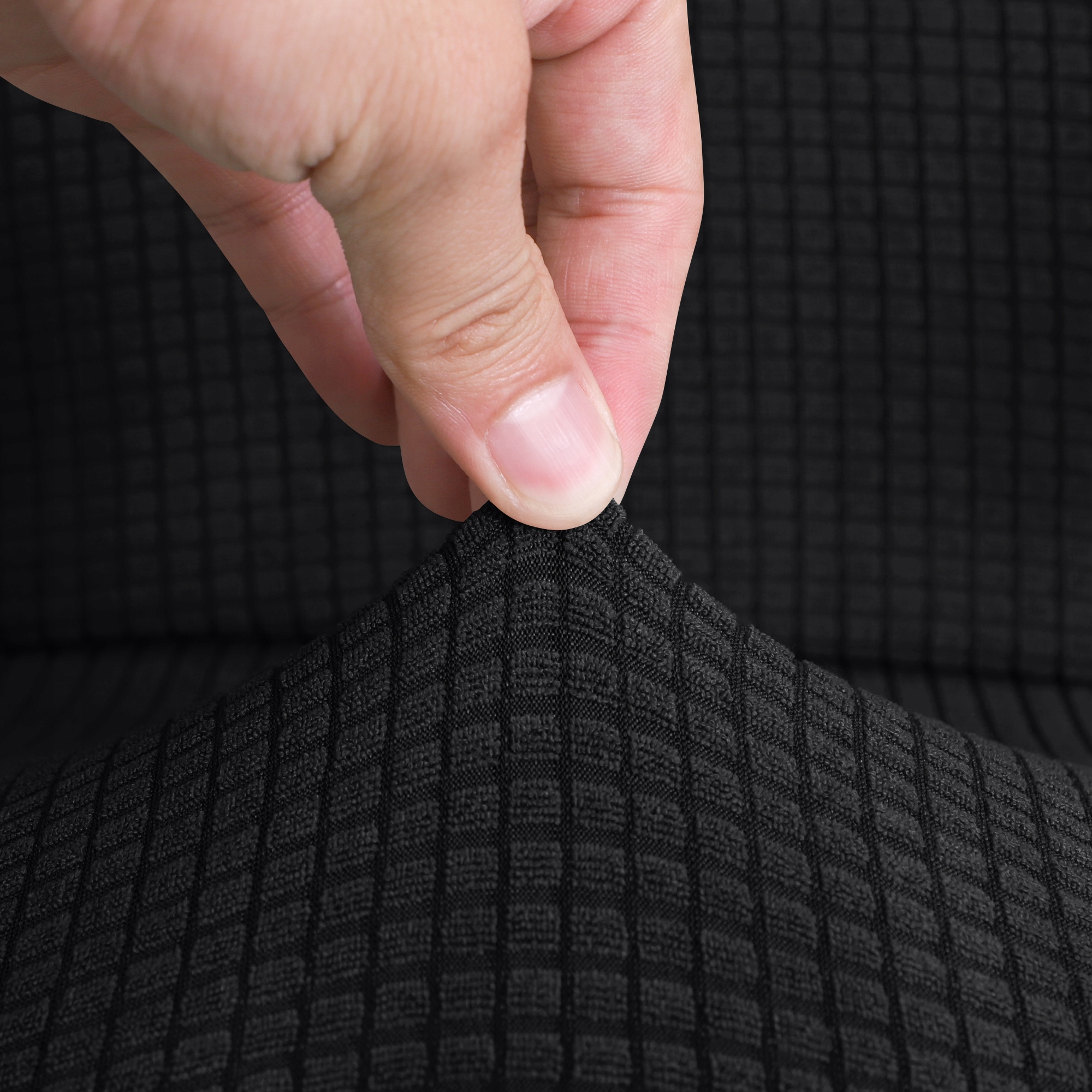 Zahvaljujoč vsem tem elementom se prevleka popolnoma prilega pohištvu in ostane na mestu, ne zdrsne dol.