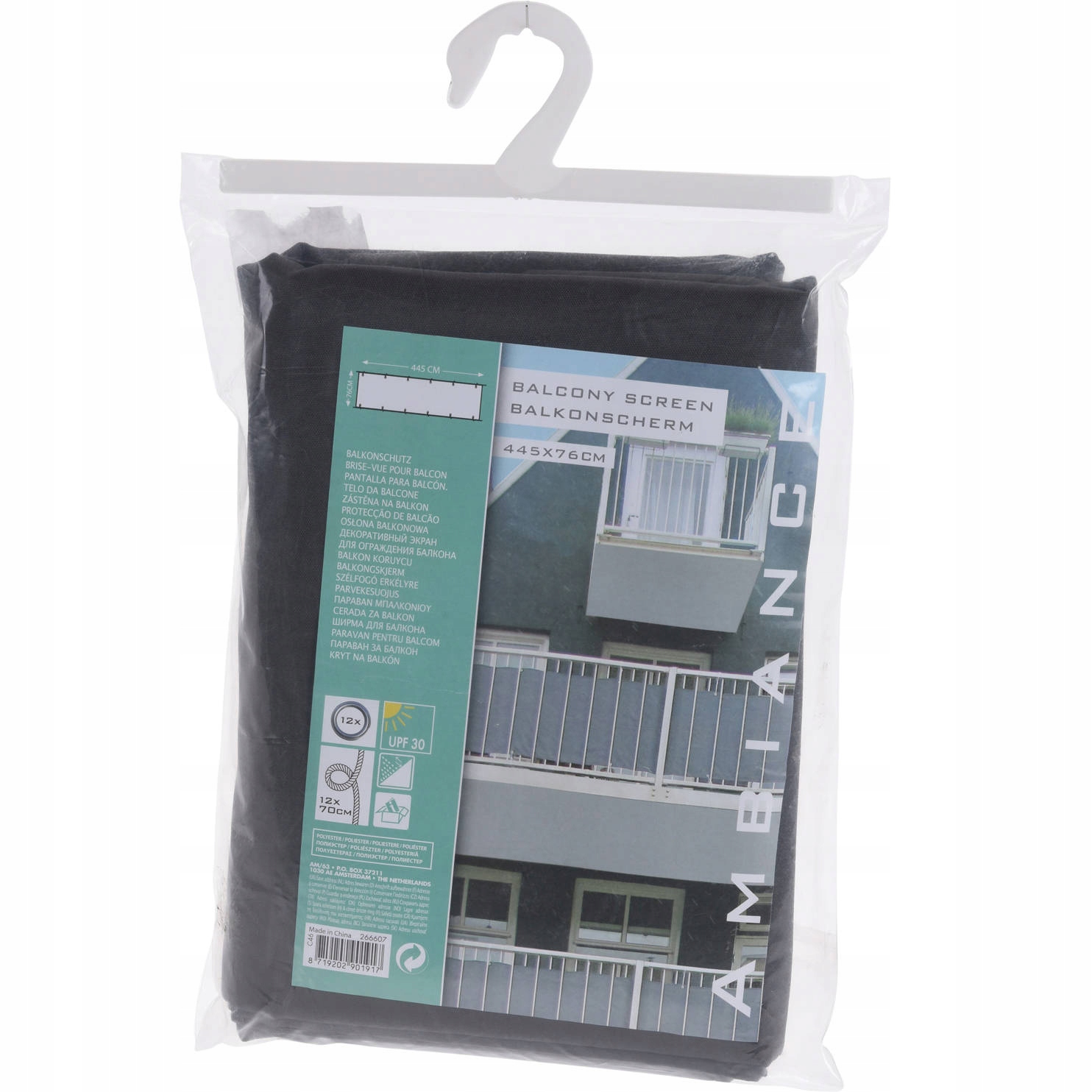 Ta temno siva balkonska prevleka je izdelana iz trpežnega poliestra.
