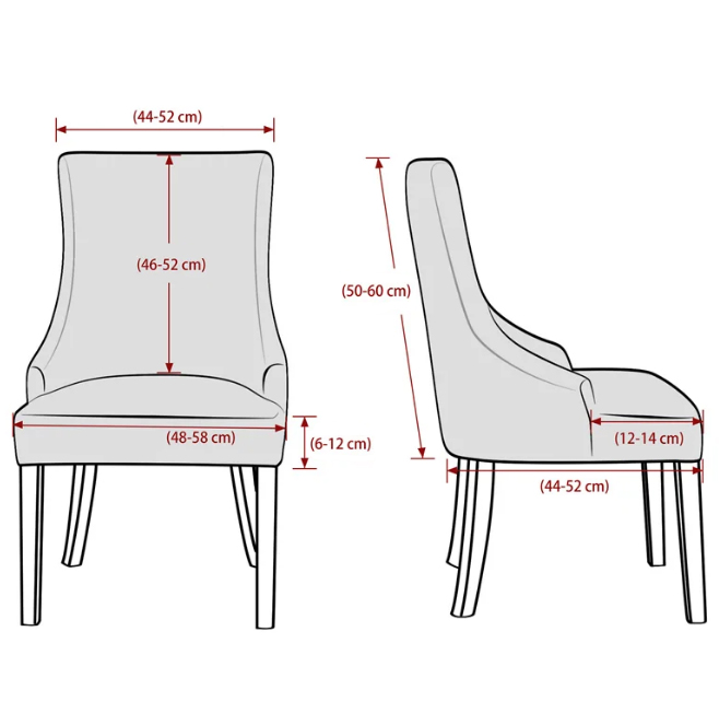 Ni vam treba skrbeti za obliko naslonjala – naše prevleke ustrezajo vsem stolom, katerih dimenzije se ujemajo s spodaj navedenimi;