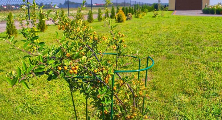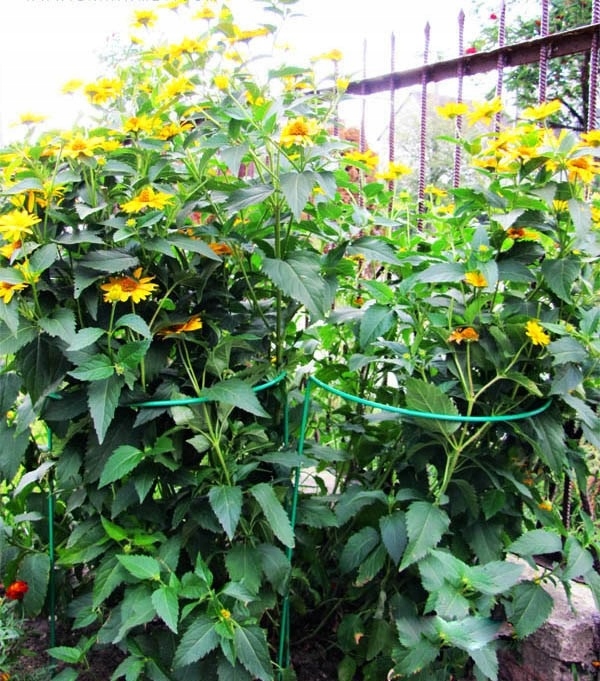 Podpora, izdelana iz najkakovostnejših materialov, ne le ščiti pred poškodbami, temveč se zaradi zelene PVC prevleke harmonično zlije z okoliškimi rastlinami. Ta rešitev zagotavlja zdravje in lepoto vaših rož, kot so potonike in hortenzije, brez vidnih znakov motenj.