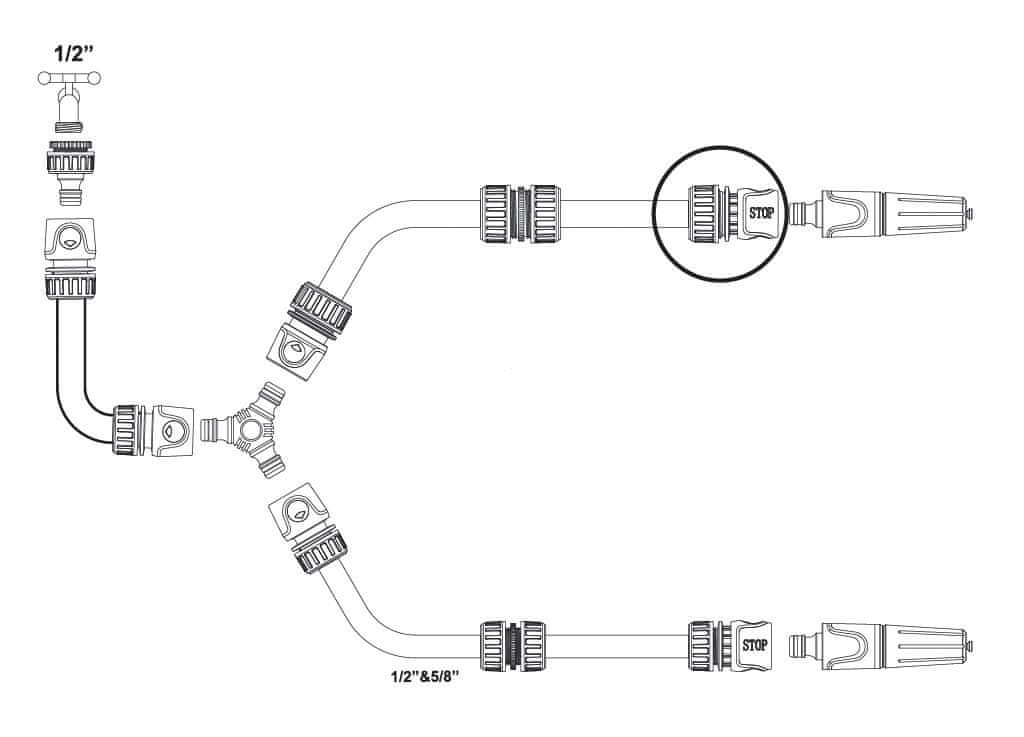 3/4" hitri priključek – z vodno zaporo / TEGER – je trden in vzdržljiv priključek za namakalne sisteme, zasnovan za hitro in enostavno priključitev vrtnih cevi s premerom 3/4" (19 mm). Opremljen z ustrezno profiliranimi zobmi zagotavlja stabilno namestitev tudi za tankostenske cevi. Ergonomska matica zagotavlja varno in tesno povezavo ter preprečuje puščanje vode. Žlebasti ročaj iz ABS plastike, prekrit s termoplastično gumo (TPR), zagotavlja udobno in zanesljivo delovanje tudi v mokrih pogojih. Opomba: Ta model s hitrim priključkom ima funkcijo Waterstop, kar pomeni, da ob odklopu samodejno zapre pretok vode po odklopu dodatkov (npr. brizgalk, brizgalnih pištol), zaradi česar ni treba zapirati pipe.