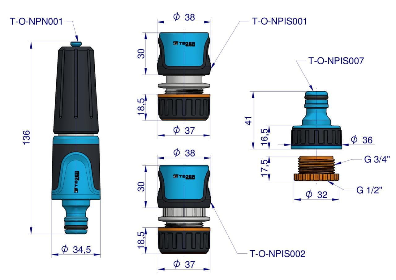 Vrtni set 1/2" (20m cev, pršilni set, obešalo za cev) / TEGER / Visokokakovosten 3-delni zalivalni set iz visokokakovostnih materialov odlikujejo vzdržljivost, odpornost, ergonomska oblika in najvišja kakovost izdelave. Set vsebuje: Pršilni set 1/2" & 3/4" / Vrtna cev „STANDARD PLUS“ FI 1/2". 20m / Obešalo za vrtno cev