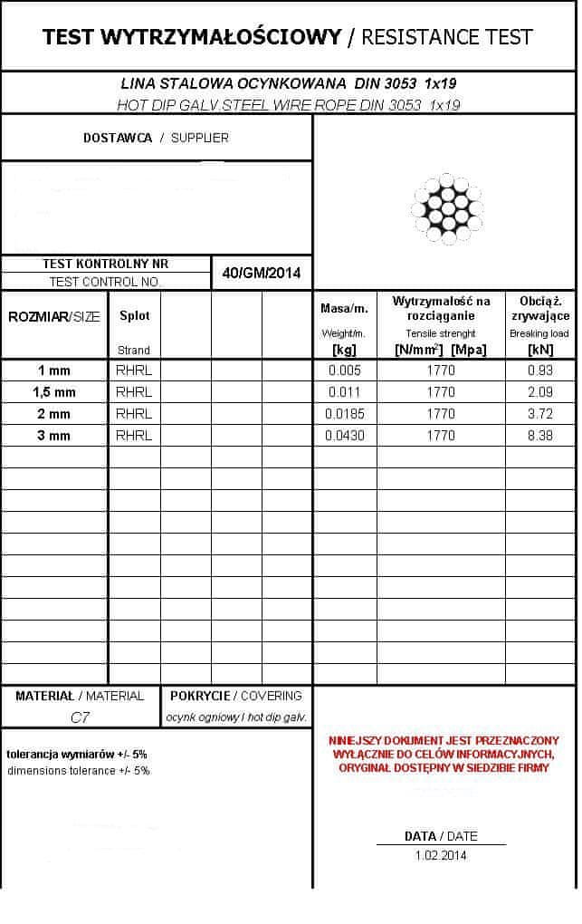 Galvaniserad stållina 2,0 mm 1*19 200 MB – 200 MB – Lin 2*19 MB Celoten opis