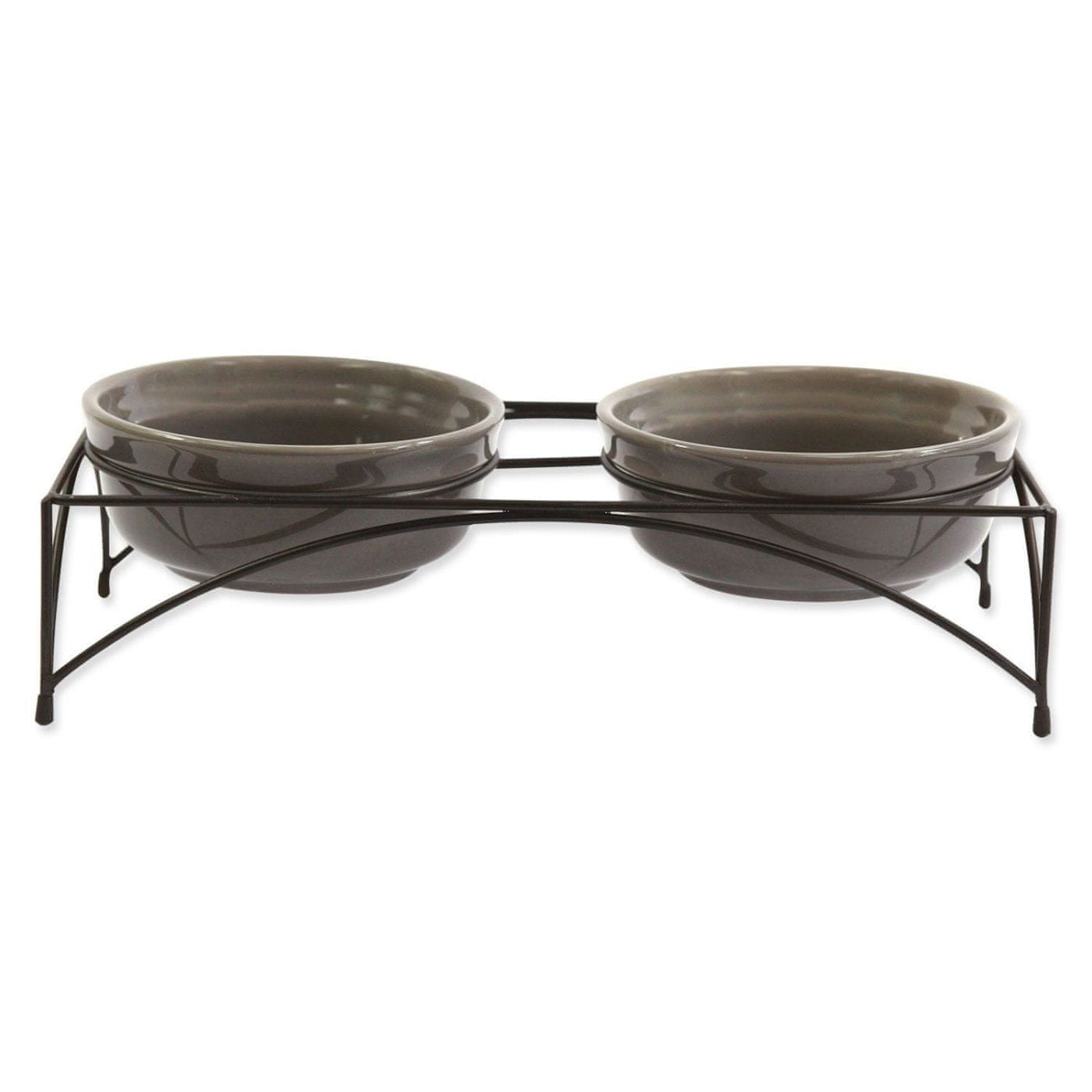 Dog Fantasy Komplet keramičnih posod s stojalom sive barve 2x12,5x5cm