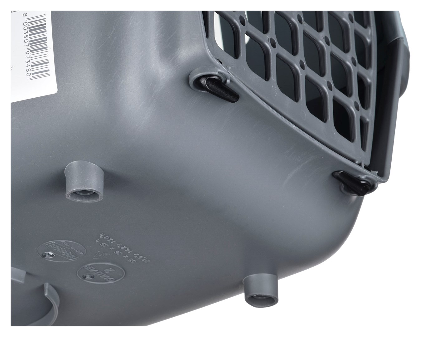 GULLIVER 2 s plastičnimi vrati je funkcionalen in univerzalen transporter, idealen tako za mačke kot za majhne pse (npr. za škotske terierje, avstralske terierje, jazbečarje, šicuje, čivave ali miniaturne špice). Na stranskih stenah ima navpične odprtine za prezračevanje, ki zagotavljajo odlično prezračevanje.