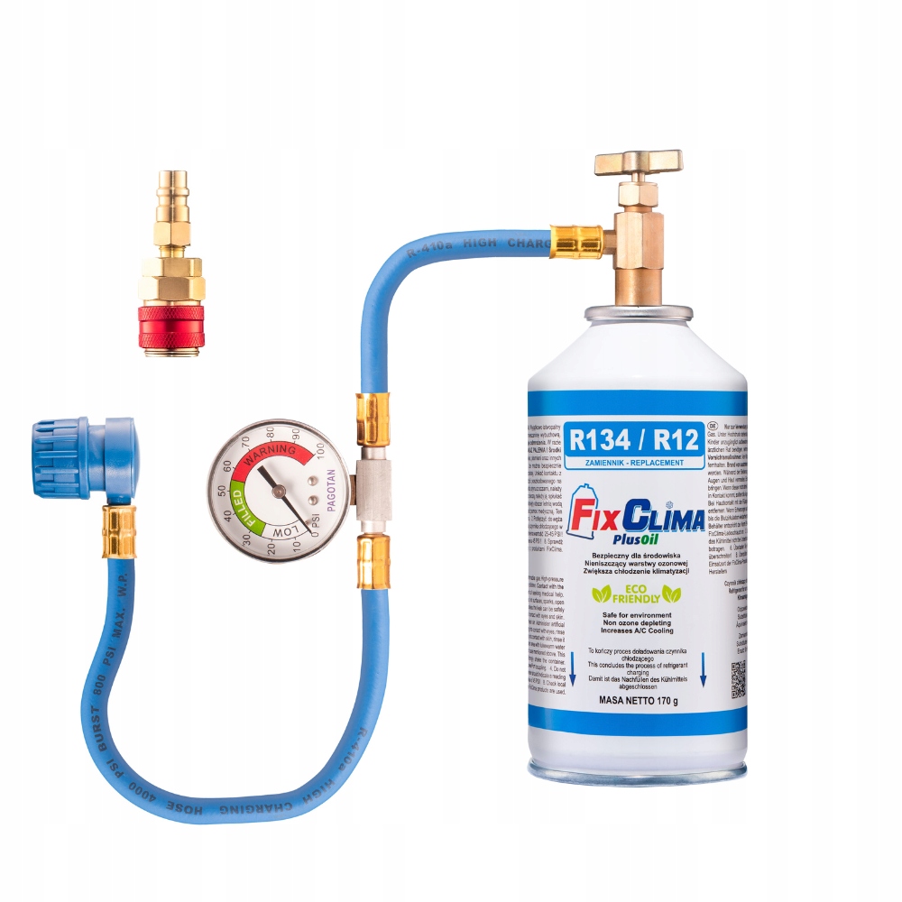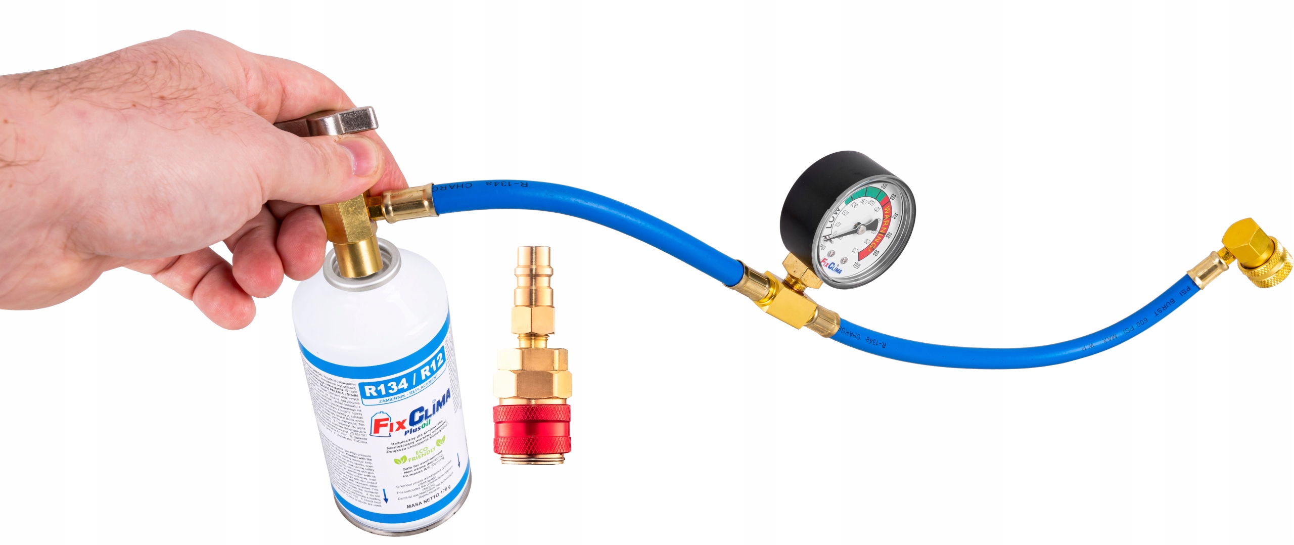 KOMPLET ZA POLNJENJE AVTOMOBILSKE KLIMATSKE NAPRAVE HLADILNI PLIN R134A + ADAPTER