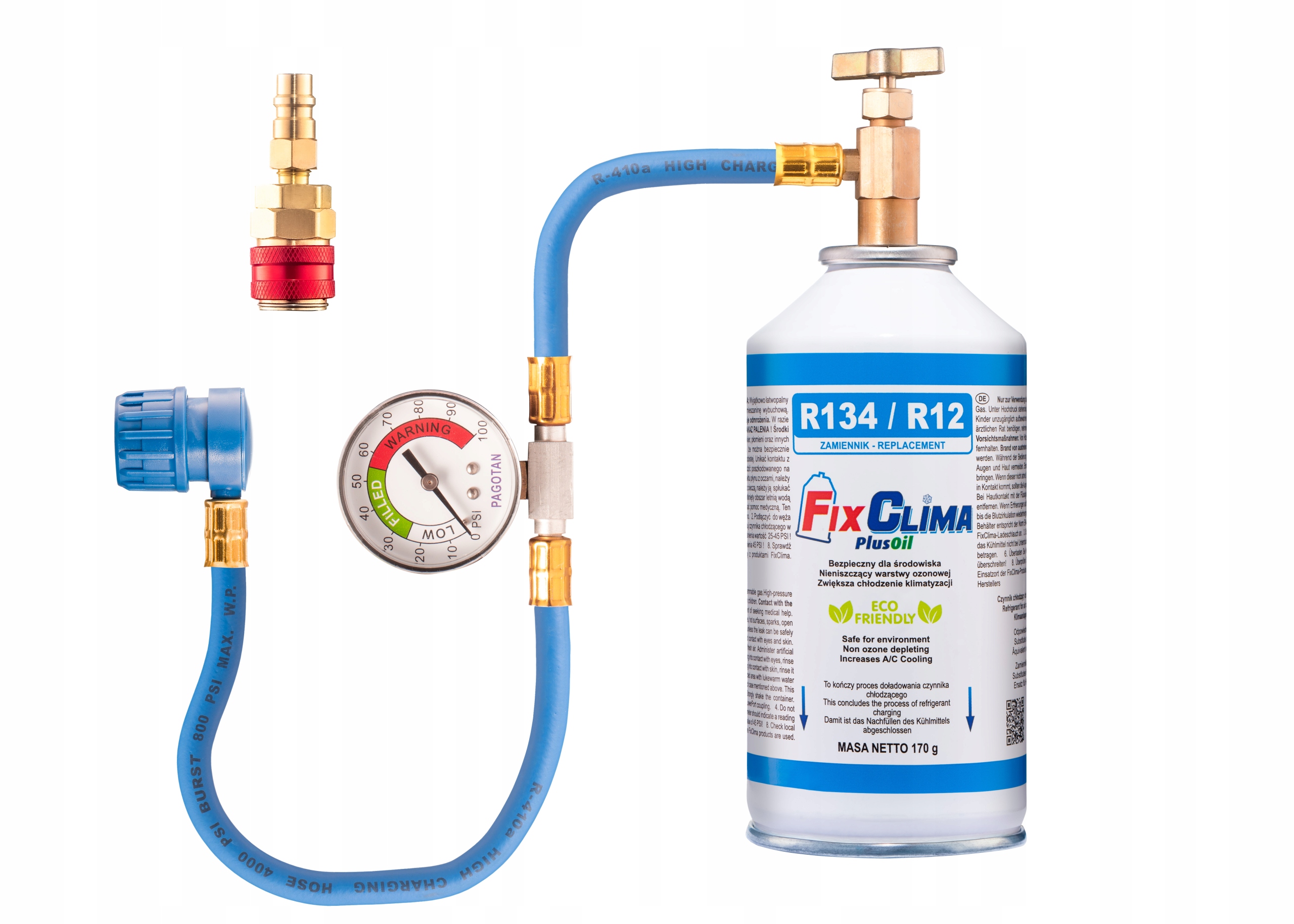Ena pločevinka vsebuje 170 gramov hladilnega sredstva FixClima , kar ustreza 453 gramom prejšnjega hladilnega sredstva R134a .