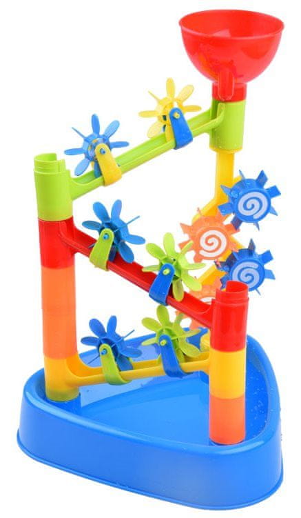 Fantastični igralni set z mlinčkom bo odličen ne le za peskovnik. Mlinček se lahko uporablja za igro z vodo in peskom. V zgornji del (lijak) mlinčka nalijte vodo in opazujte, kako teče po progi in vrti zobnike. Višina mlinčka: 41,5 cm Primerno za otroke od 3. leta starosti.