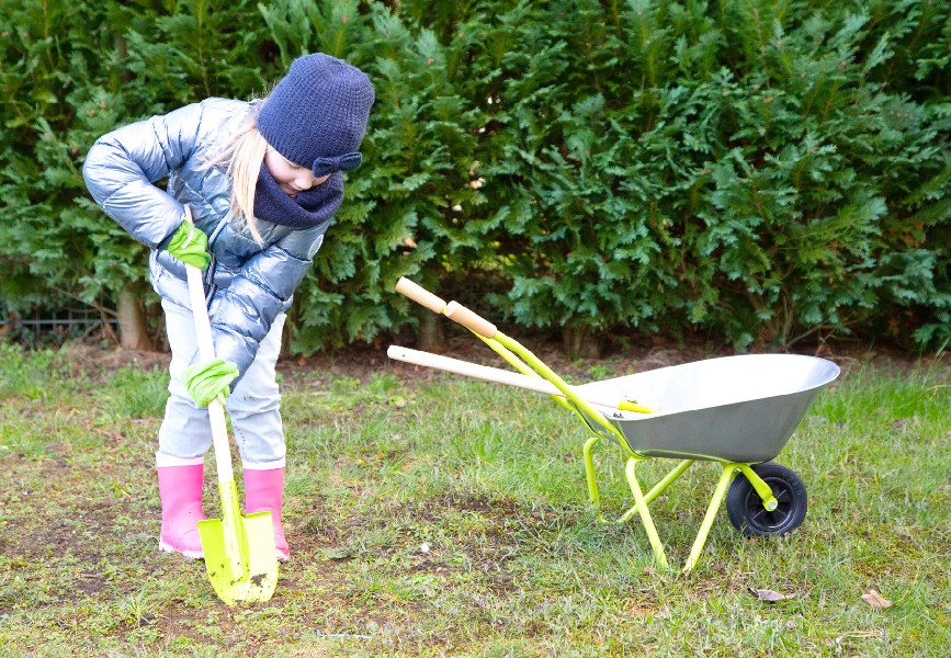 Popolna oprema za vrtnarjenje! Kolesarska samokolnica ima prostornino približno 10 litrov, z bombažnimi rokavicami, lopato in grabljami pa lahko otroci pomagajo staršem na vrtu. Glavne značilnosti: izjemno velika prostornina leseni ročajikolesa iz nebarvane kovinemočno gumijasto kolo lopata in grablje, tekstilne rokavice iz 100-odstotnega bombaža