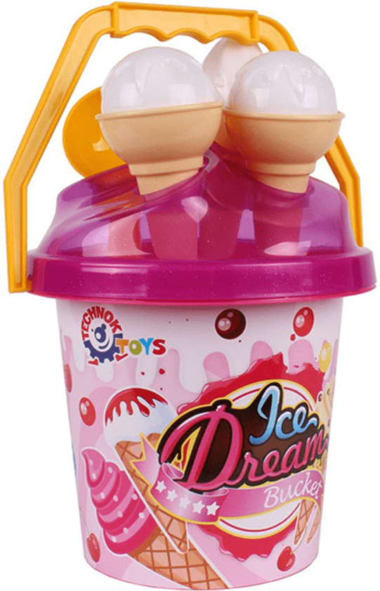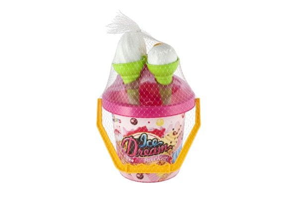 1 vedro (višina približno 20 cm), 1 zajemalka, 2 modelčka za sladoled.