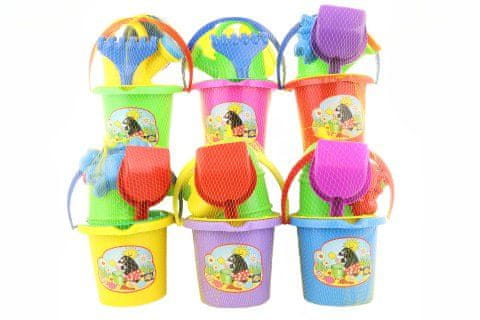 Komplet plastičnega peska vključuje vedro, sito, zajemalko, grabljice, čajnik in sveženj.Starost 3+