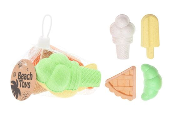 Peščeni modelčki FOOD, set 4, PH. material: pesek mešanica barv in motivov pakiranje: 4 kosi Zabavni modelčki v obliki hrane so idealen spremljevalec za pesek, plažo ali vodo. Celoten opis