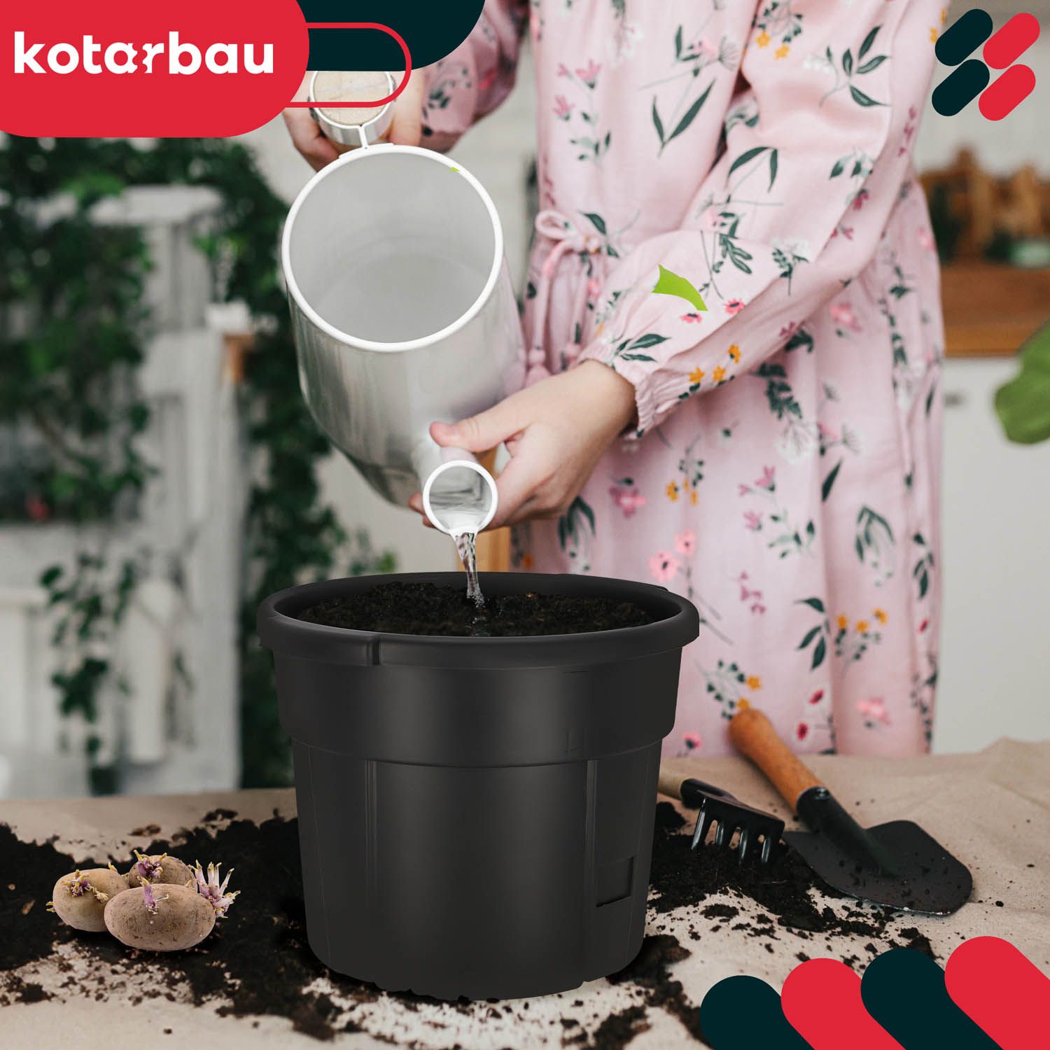 zasnovan z mislijo na maksimalno udobje uporabnika. Notranji del deluje kot košara, ki omogoča krompirju prosto rast in ga je kasneje enostavno odstraniti. Zunanji pokrov deluje kot zaščitna plast, ki ščiti gomolje pred svetlobo, vremenskimi vplivi in mehanskimi poškodbami. Zahvaljujoč temu lahko uživate v zdravi letini, ne da bi se morali kopati v zemljo ali si umazati roke – preprosto odstranite vložek in poberite zrel krompir. EKOLOGIJA: Gojenje lastnega krompirja ni le zadovoljstvo, temveč tudi zagotovilo za kakovost.