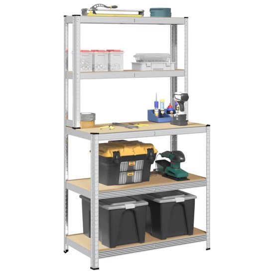 shumee vidaXL 5-nadstropna delovna miza s policami srebrno jeklo in inž. les