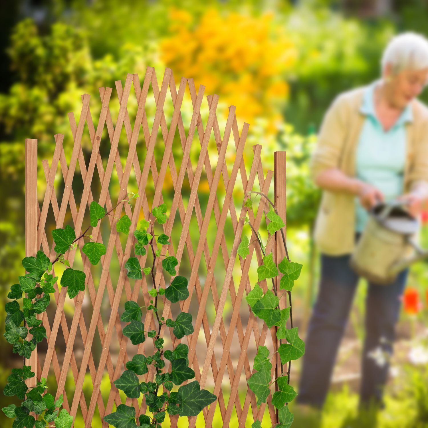 Vzpenjajoča rešetka ponuja robustno oporo za klematis, vrtnice in drugo, kar poveča navpično privlačnost vašega vrta. Prilagodljiva širina se prilagodi vsakemu prostoru, kar zagotavlja, da vaše rastline uspevajo brez pritrditve na tla.