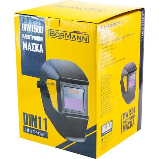 Avtomatska varilna maska Bormann BIW1500 primerna za domače mojstre. Predstavlja idealno izbiro za MMA, MIG-MAG in TIG varjenje. LCD zaslon s tekočimi kristali deluje tako, da se med delom samodejno zatemni, ob koncu varjenja pa ponovno postane prozoren. Slednje sprosti obe roki operaterja. Oblikuje jo zatemnitev DIN 11, UV zaščita DIN 16 in dimenzija reža za pogled 98 × 53 mm