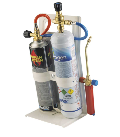 TURBO SET 30, VISOKA ZMOGLJIVOST, VARNO, VARČNO za avtogeno spajkanje z jeklenko za enkratno uporabo in kartušo s 110 bari kisika in 330 grami propana/butana. Celoten opis